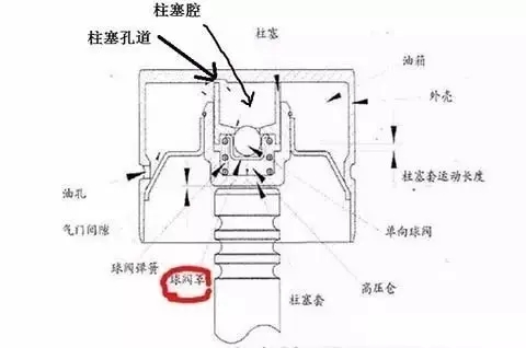 当凸轮转到工作面时挺杆上升,气门弹簧张力通过气门推杆作用在柱塞上,但此时单向阀巳关闭使油液无法溢出,而油液具有的不可压缩性使得挺杆像一个整体一样推动着气门开启。在此过程中,由于挺杆体腔油压很高,有少许油液通过挺杆体与柱塞的间隙处泄漏出去而使挺杆工作长度“缩短”。当凸轮转过工作面时挺杆下降,气门关闭,挺杆体腔内的油压也随之下降,于是主油道的机油又再次推开单向阀注入挺杆体腔内,补充油液,重复循环以上动作。